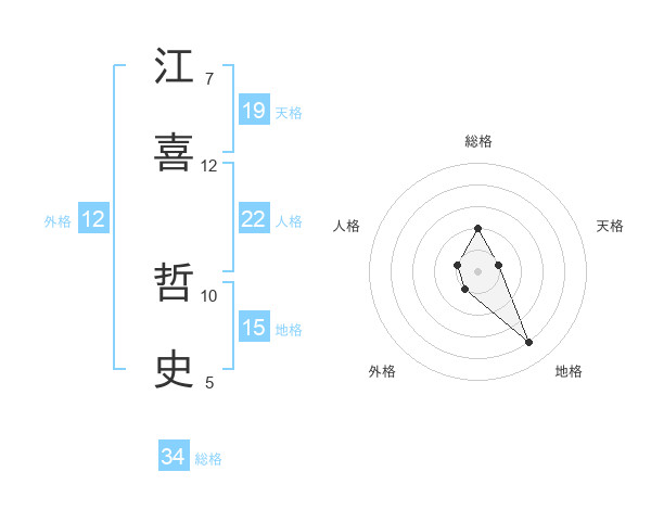 江喜 哲史さんの総格は34画の2点!