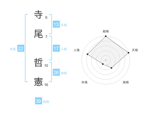 寺尾 哲憲さんを姓名の画数から五運を鑑定