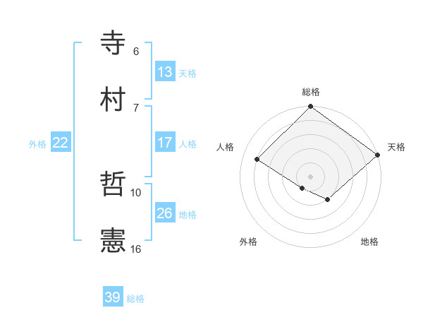 寺村 哲憲さんを姓名の画数から五運を鑑定