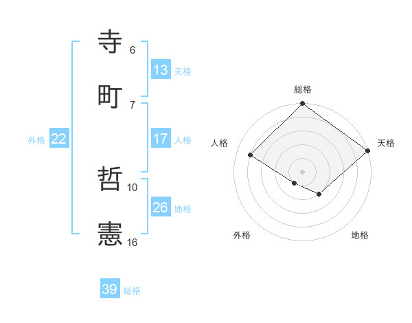寺町 哲憲さんの総格は39画の5点!