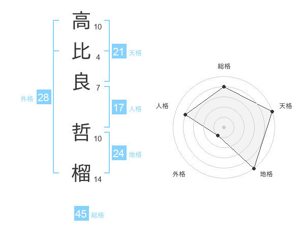 高比良 哲榴さんを姓名の画数から五運を鑑定