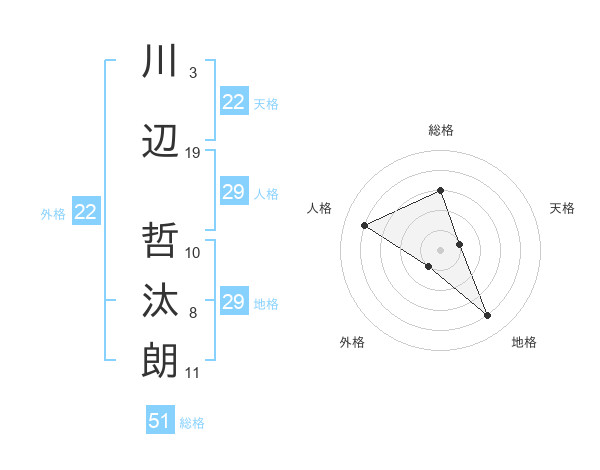 川辺 哲汰朗さんを姓名の画数から五運を鑑定