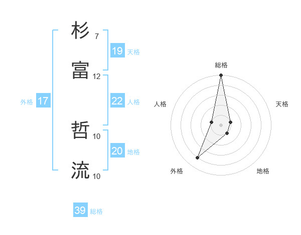 杉富 哲流さんの総格は39画の5点!