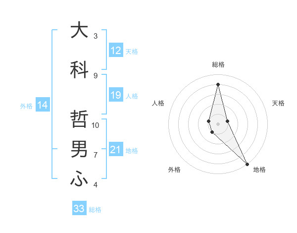 大科 哲男ふさんを姓名の画数から五運を鑑定