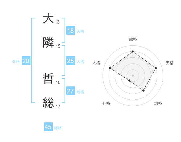 大隣 哲総さんを姓名の画数から五運を鑑定