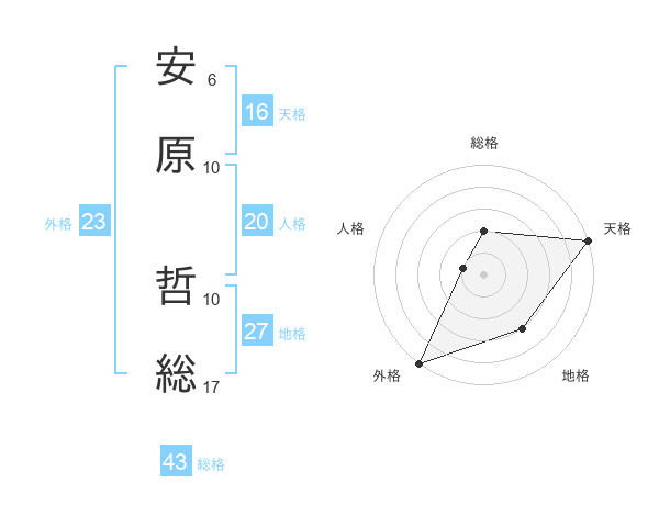 安原 哲総さんの天格は16画の5点!
