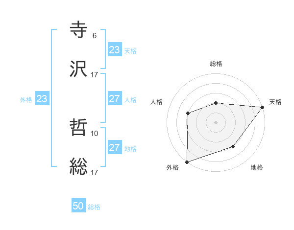 寺沢 哲総さんの天格は23画の5点!