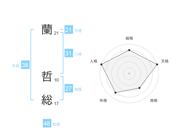 蘭 哲総さんの外格は38画の4点!