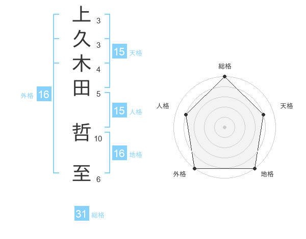 上久木田 哲至さんを姓名の画数から五運を鑑定
