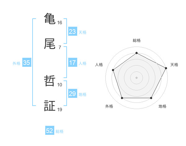 亀尾 哲証さんの総格は52画の4点!