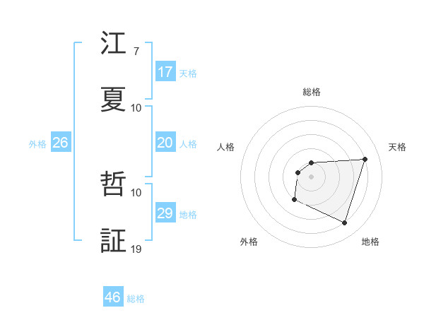 江夏 哲証さんの天格は17画の4点!