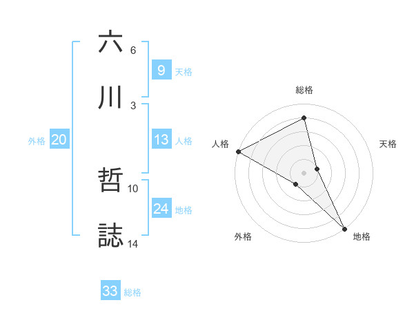 六川 哲誌さんの総格は33画の4点!