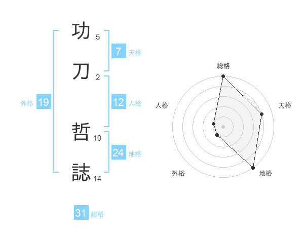 功刀 哲誌さんを姓名の画数から五運を鑑定
