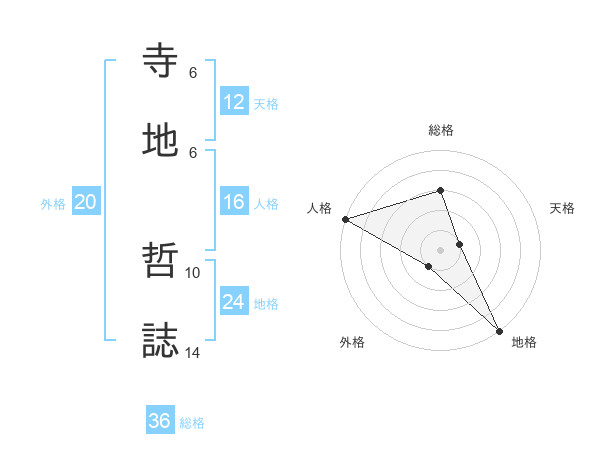 寺地 哲誌さんの総格は36画の3点!