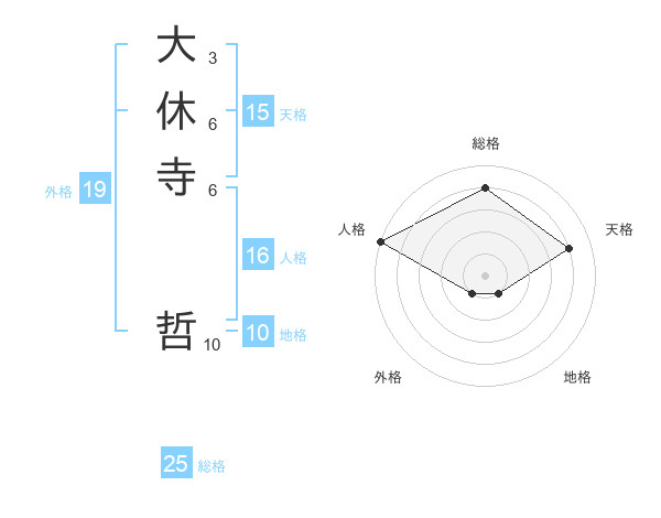大休寺 哲さんを姓名の画数から五運を鑑定