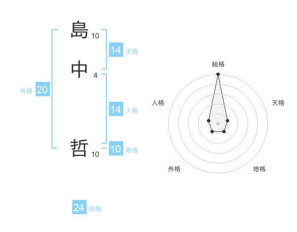 島中 哲さんの総格は24画の5点!