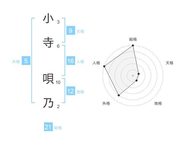 小寺 唄乃さんの総格は21画の5点!