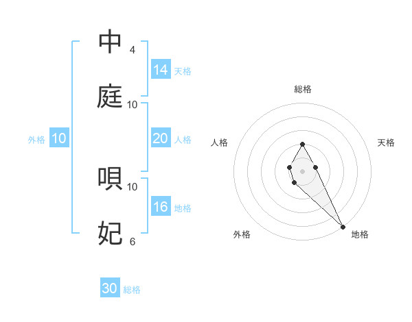 中庭 唄妃さんを姓名の画数から五運を鑑定