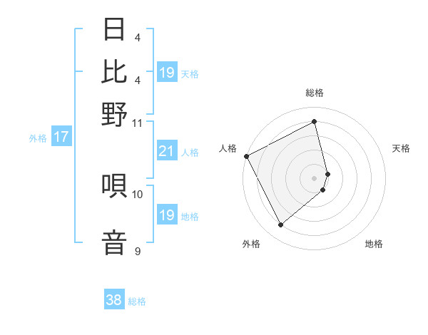 日比野 唄音さんを姓名の画数から五運を鑑定