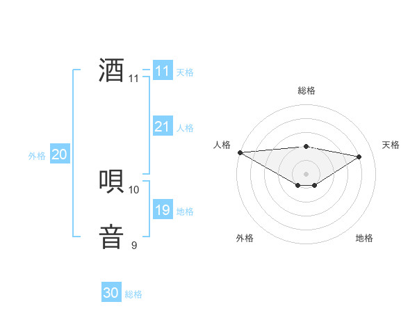 酒 唄音さんの外格は20画の1点!