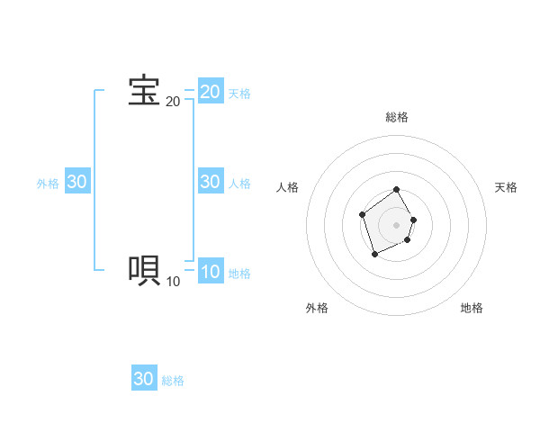 宝 唄さんの総格は30画の2点!