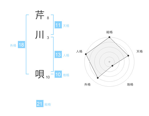 芹川 唄さんの総格は21画の5点!
