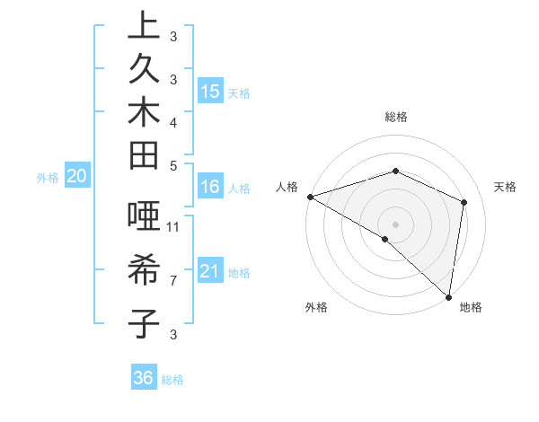 上久木田 唖希子さんを姓名の画数から五運を鑑定