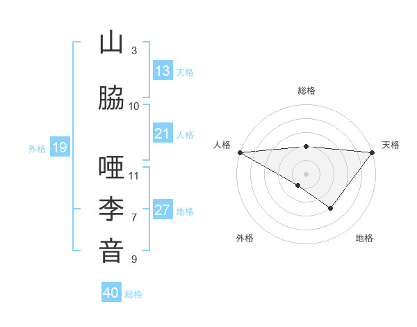 山脇 唖李音さんを姓名の画数から五運を鑑定
