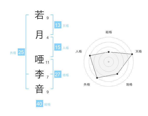 若月 唖李音さんを姓名の画数から五運を鑑定