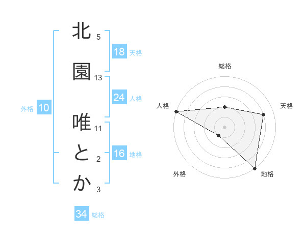 北園 唯とかさんを姓名の画数から五運を鑑定