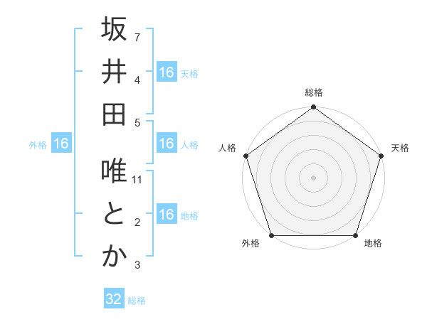 坂井田 唯とかさんの地格は16画の5点!