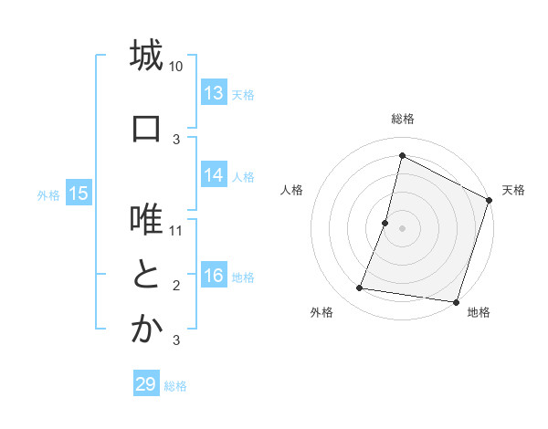 城口 唯とかさんを姓名の画数から五運を鑑定