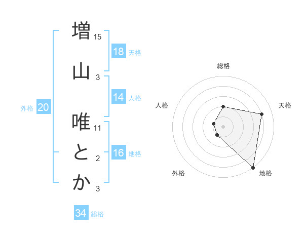 増山 唯とかさんの天格は18画の4点!