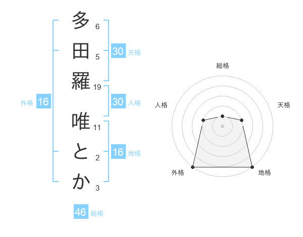 多田羅 唯とかさんを姓名の画数から五運を鑑定
