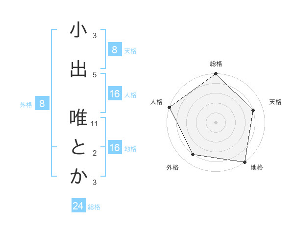 小出 唯とかさんを姓名の画数から五運を鑑定