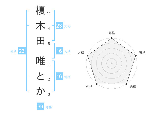 榎木田 唯とかさんを姓名の画数から五運を鑑定
