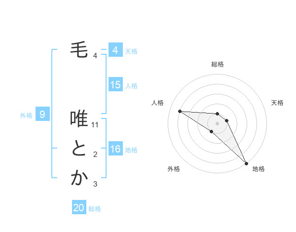 毛 唯とかさんの総格は20画の1点!