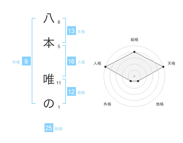 八本 唯のさんの天格は13画の5点!