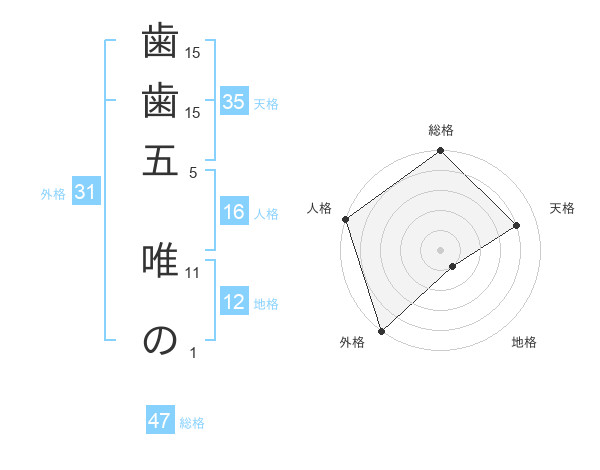 歯歯五 唯のさんを姓名の画数から五運を鑑定