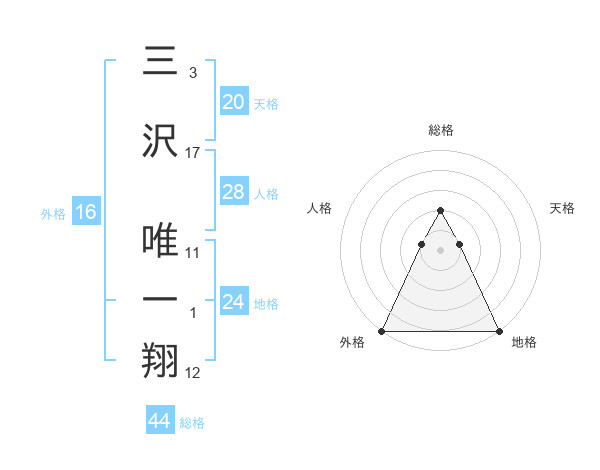 三沢 唯一翔さんの総格は44画の2点!