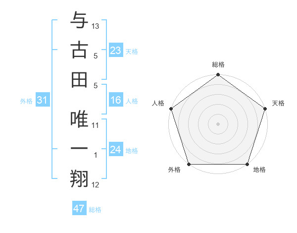 与古田 唯一翔さんを姓名の画数から五運を鑑定