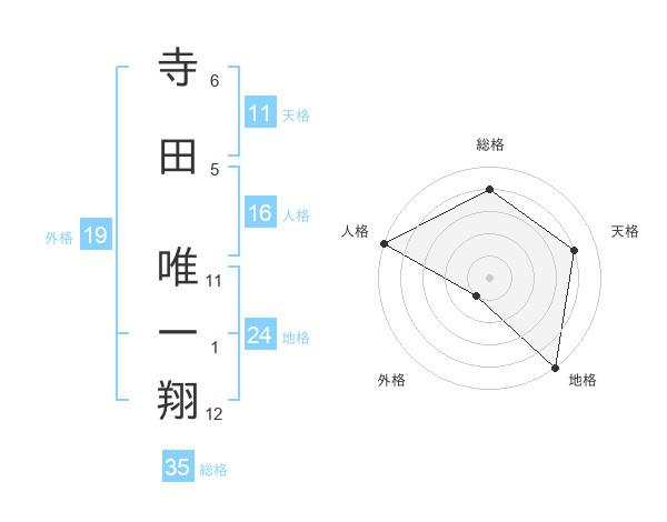 寺田 唯一翔さんを姓名の画数から五運を鑑定