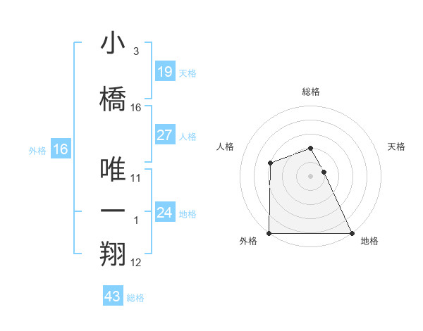 小橋 唯一翔さんを姓名の画数から五運を鑑定