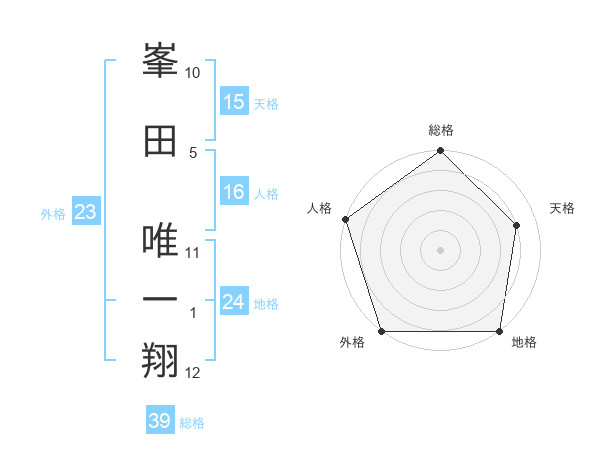 峯田 唯一翔さんの総格は39画の5点
