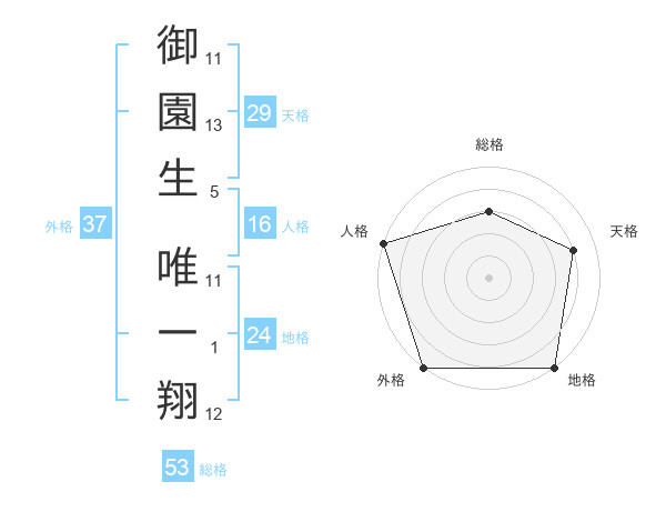御園生 唯一翔さんを姓名の画数から五運を鑑定