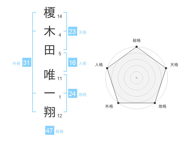榎木田 唯一翔さんを姓名の画数から五運を鑑定