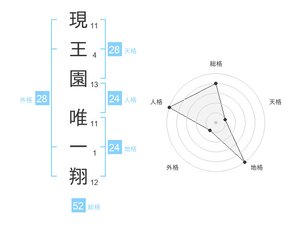 現王園 唯一翔さんを姓名の画数から五運を鑑定