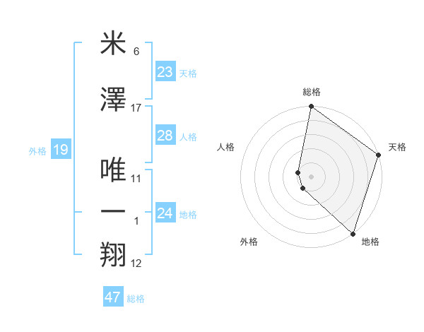 米澤 唯一翔さんを姓名の画数から五運を鑑定