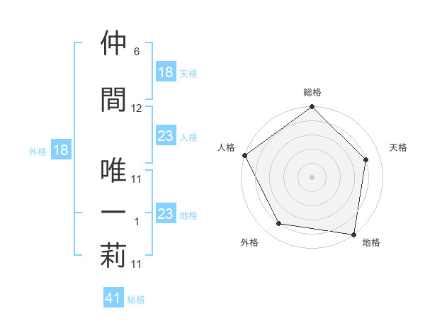 仲間 唯一莉さんの外格は18画の4点!