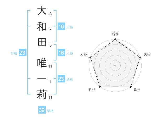 大和田 唯一莉さんの天格は16画の5点!